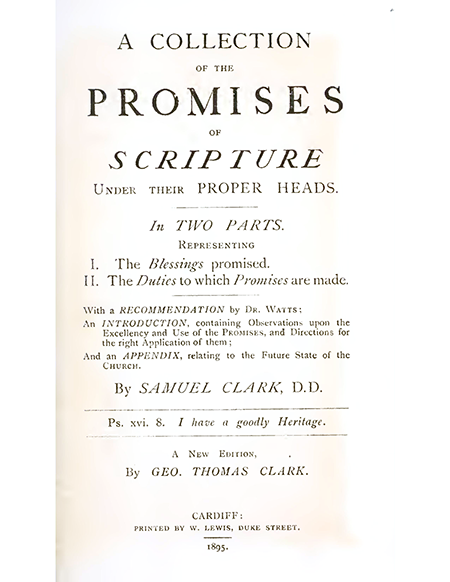 The orphan boy was soon removed to St. Albans, twenty miles north of London, where he attended the private school of the learned and pious Nathaniel Wood, some of whose letters will be found in the present work. While connected with this school, his conduct and attainments deserve honorable men tion. Not only was he a close student, but he took delight in assisting other students whose advantages were inferior to his own ; he conversed with them on religious subjects, and encouraged social meetings for and his walks for exercise were turned to a benevolent and pious account. Often did he call at the cottages of the poor, that he might read to them the Scriptures and other religious books, and con tribute, from his slender funds, to the supply of their temporal necessities. Thus early did he lay the foundation of those habits of practical usefulness to which his professional life was so ardently devoted while at St. Albans, that he made the acquaintance, and gained the affectionate esteem, of the Rev. Samuel Clarke,[1] the well-known author of "Scripture Promises,” whose ministry he regularly attended, with great practical benefit.