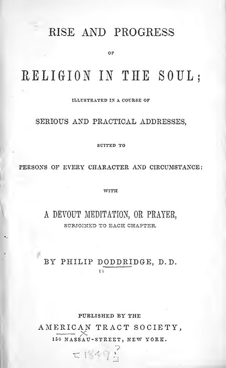 (Taken from MEMOIR OF THE LIFE, CHARACTER, AND WRITINGS OF PHILIP DODDEIDGE, D. D. WITH A SELECTION FROM HIS CORRESPONDENCE. By Rev. James R. Boyd, A. M.)